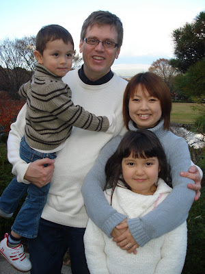Svärföräldrarna har varit här och vi åt soba och en stor friterad räka tillsammans med dem. Små pratade med dem och hade det gott. Barnen har tittat på en Disney DVD från Sverige på svenska (Långben). Atsuko vill titta på olika japanska sångare och musikgrupper som uppträder ända tills det nya året träder in. Idag har vi haft +13 grader varmt utomhus men inomhus är det ganska kallt i de rum vi inte har satt på fotogenvärmarna i. Det är tunna väggar i japan och bara en glasruta i fönsteren. I slutet av januari är det som kallast med -2 grader på morgonen och +6 grader vid lunch. Om man inte har på fotogenvärmarna är det nästan lika kallt inomhus som ute. Första vintern jag spenderade blev det en chock för mig att det inte fanns någon centralvärme, men man vänjer ju sig med det mesta. Vi har ingen snö utan väldigt milt och solsken nästan varje dag. Men på Hokkaido och utmed Japanska havet snöar det för fullt. Här i Japan är nyårshelgen den största helgen i Japan så Jul som bara firas lite grand med jultårta och lite presenter utan religiös innebörd kommer i skymundan för den stora Nyårshelgen. Många japaner går till shintotemplet på nyårsafton och ber om ett nytt välsignat år. De klär sig fint i traditionella dräkten kimono.